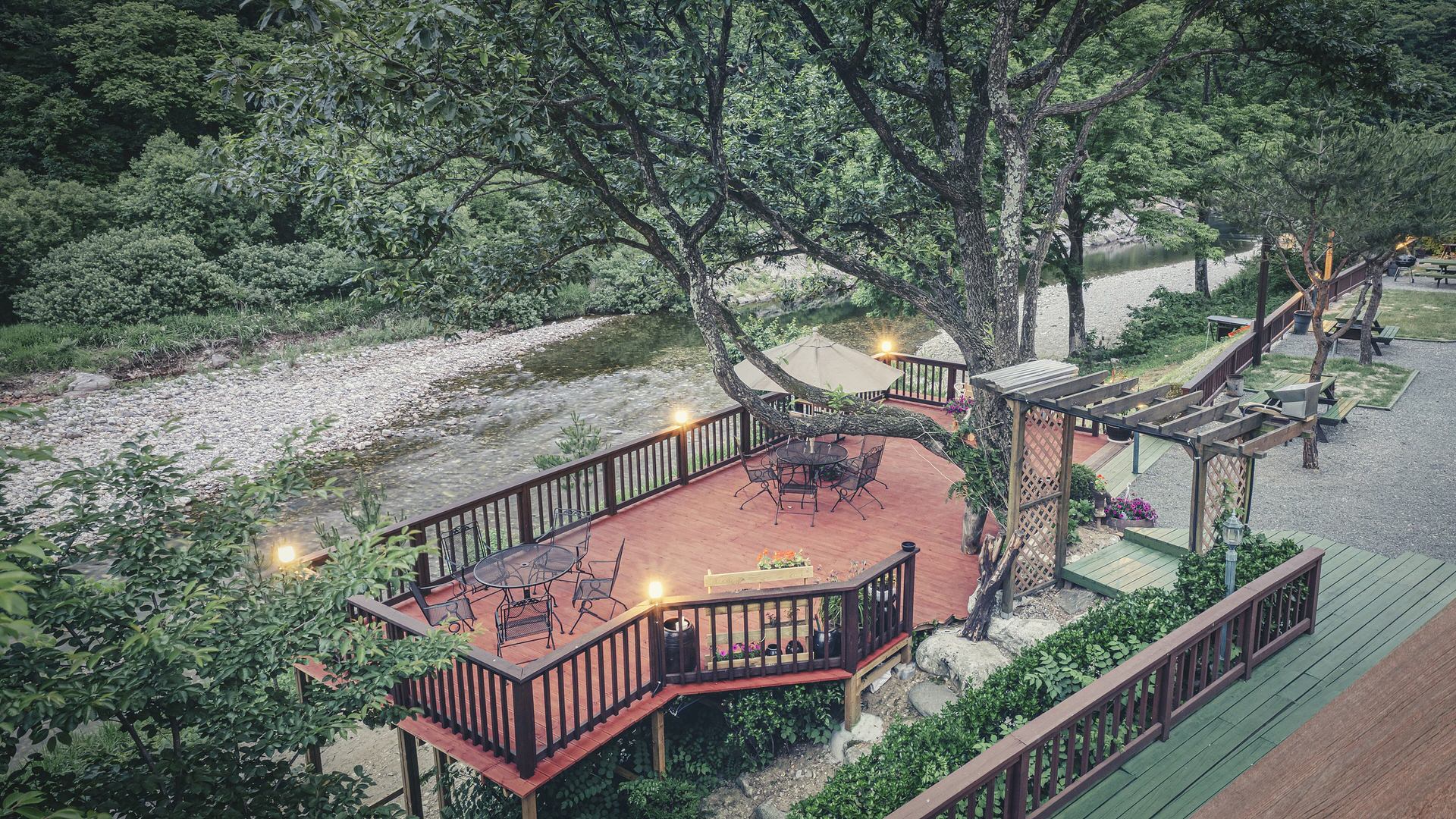 산천어가 사는 깨끗한 계곡과 병풍 같은 산에 둘러싸여 있는 자연과 우리에서 새로운 활력과 행복한 추억을 만들어 보세요.